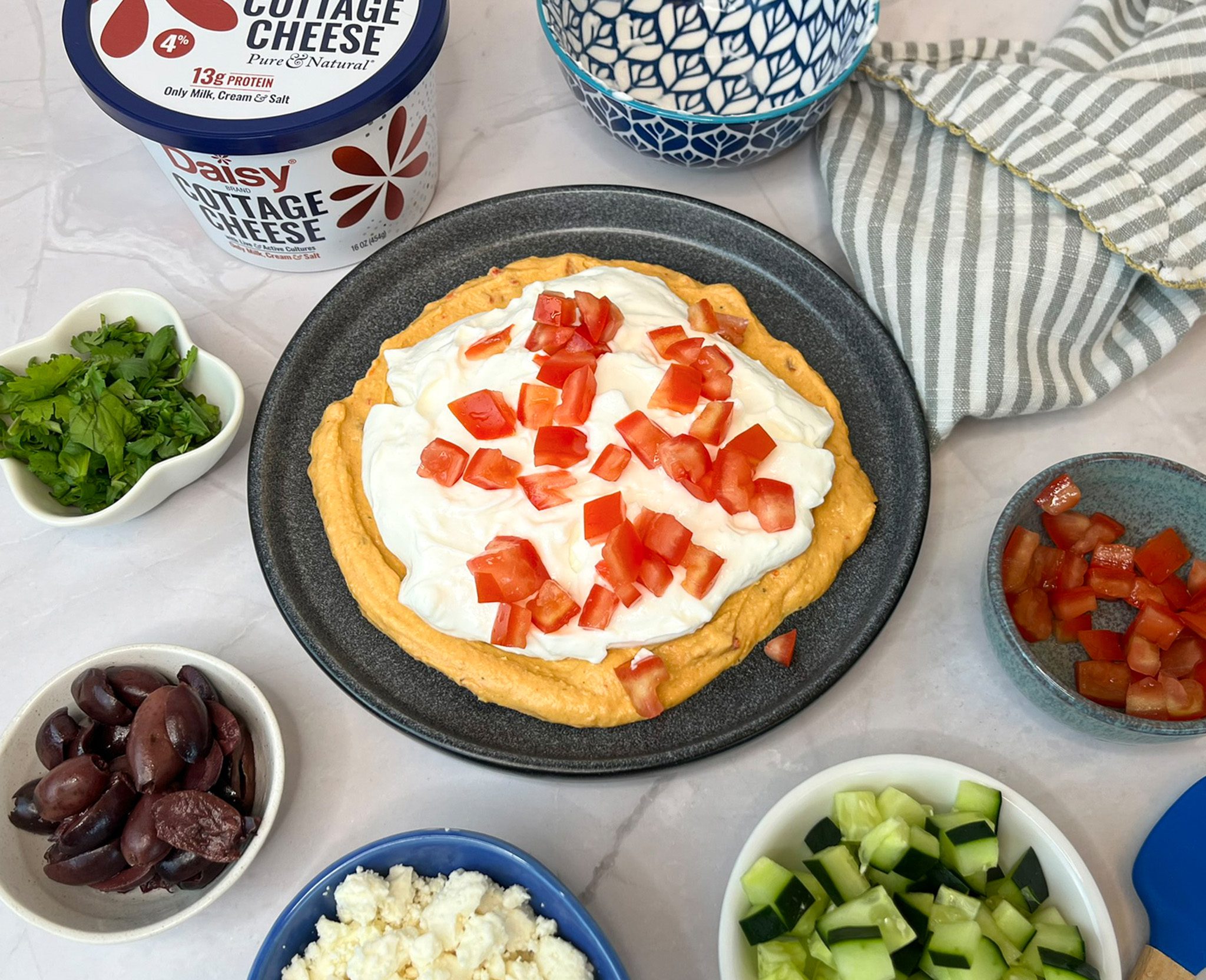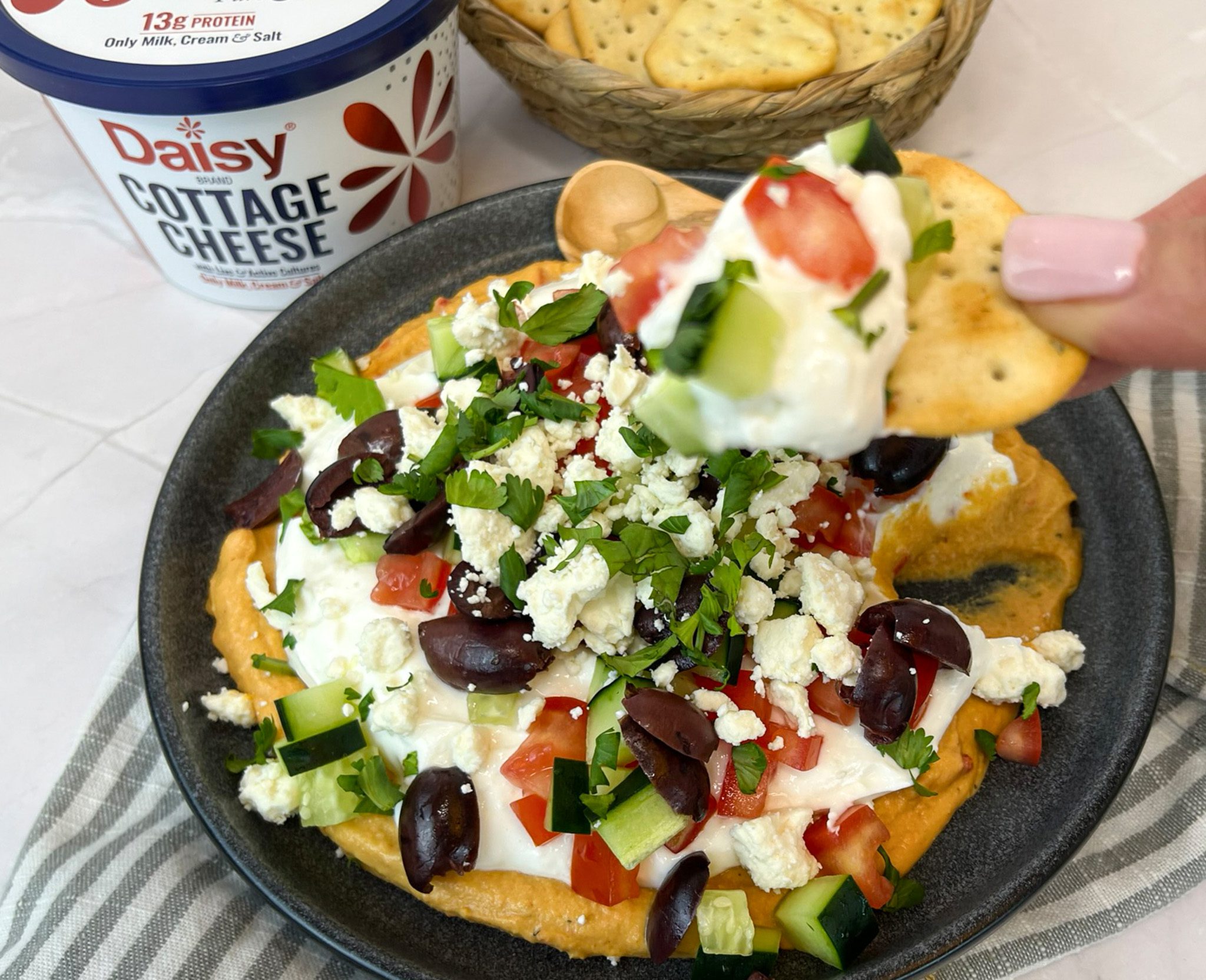Need a crowd-pleasing dip that’s as nutritious as it is delicious? This Creamy High-Protein Layered Greek Dip is the ultimate appetizer for any occasion. Made with rich and creamy Daisy Cottage Cheese, it delivers a satisfying boost of protein while creating a smooth, velvety base that’s lighter than traditional dips.