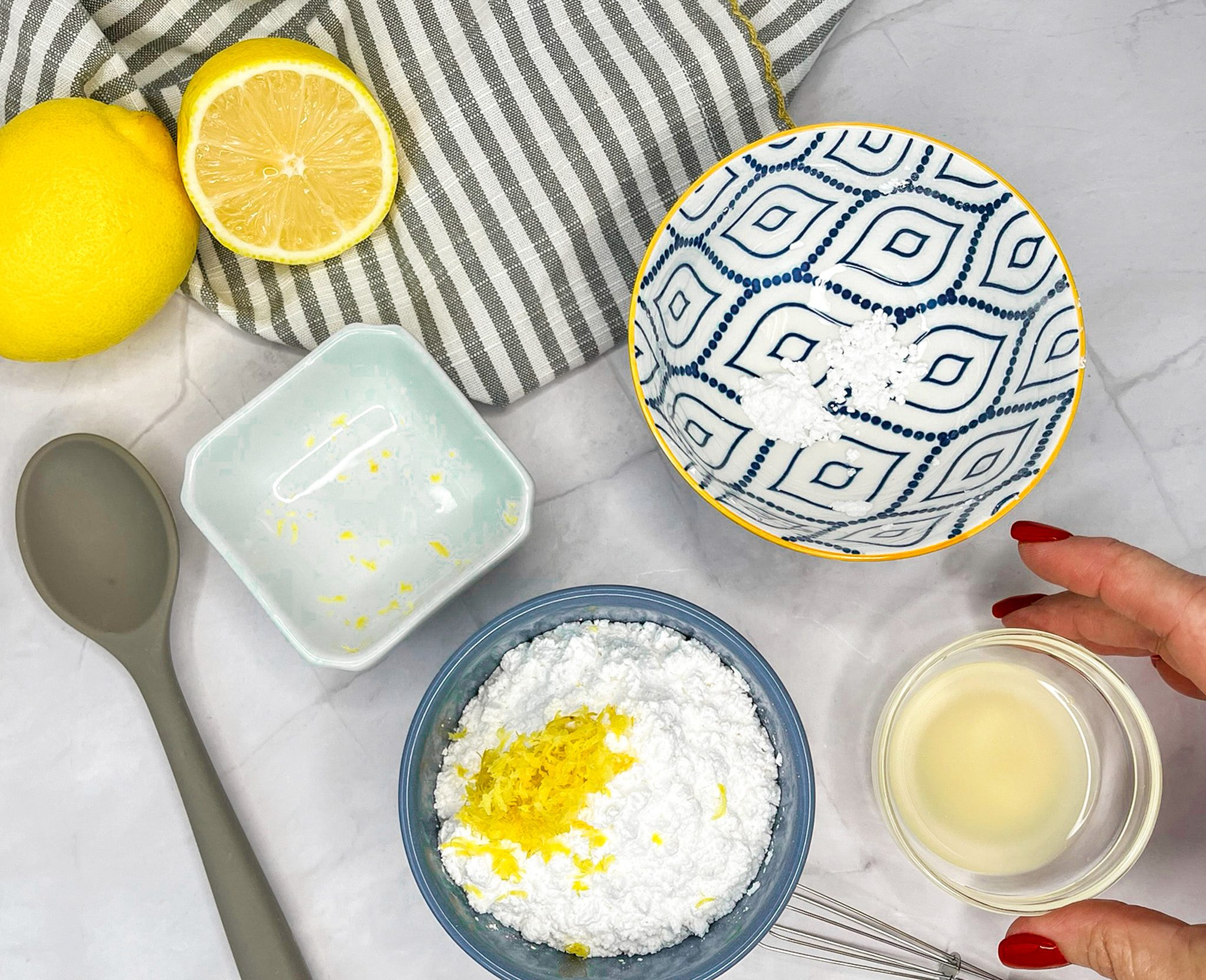 • Lemon (1 large, zested and juiced): Delivers the fresh, concentrated, tart, zesty citrus flavor to the cookies and the glaze.
